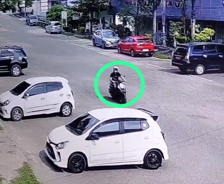 Sebelum melancarkan aksinya, pria yang menggunakan masker itu terlihat jalan sangat santai dan tidak ada satu orang pun yang curiga dan ia berhasil melarikan satu unit sepeda motor Scoopy warna hitam. Disusul oleh pelaku lain yang menggunakan mobil Honda Brio meninggalkan lokasi.