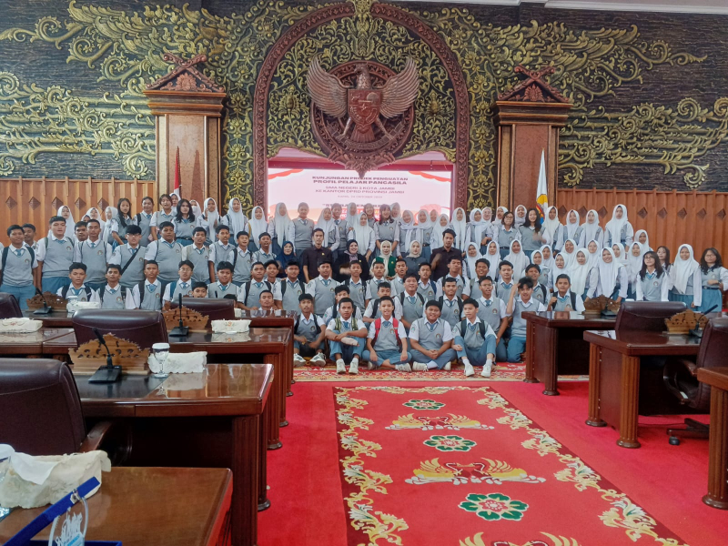 JAMBIUPDATE.CO, JAMBI– Dewan Perwakilan Rakyat Daerah (DPRD) Provinsi Jambi menerima kunjungan 430 siswa SMAN 3 Kota Jambi (24/10). Para anak bangsa ini disambut beberapa orang anggota DPRD Jambi, Hj. Eka Marlina Majid, Bima Audia Pratama, Muhammad Chandra Muzaffar, Rucita Arfianisa dan Umaima Kamila.