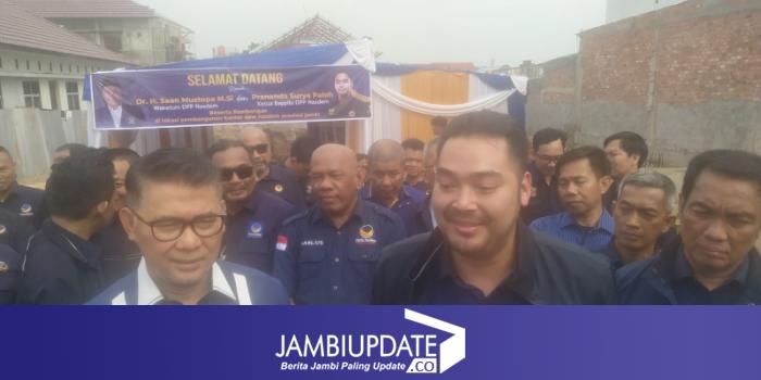 JAMBIUPDATE.CO, JAMBI - Dewan Pimpinan Wilayah (DPW) Partai NasDem Provinsi Jambi akan segera memiliki gedung sendiri di daerah Mayang Ujung, Kota Jambi. Jumat (25/10/2024), peletakan batu pertama dilakukan oleh Wakil Ketua Umum (Waketum) NasDem Saan Mustopa bersama Ketua Bappilu, Prananda Surya Paloh.