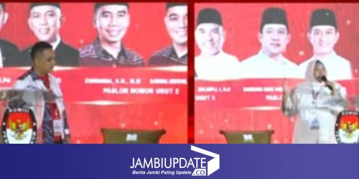 JAMBIUPDATE.CO, MUARO JAMBI- Debat Kandidat Pilkada Muaro Jambi yang digelar malam ini (2/11) berlangsung sengit. Masing-masing Paslon saling beradu argumen terkait sejumlah persoalan yang ada di Kabupaten Muaro Jambi.