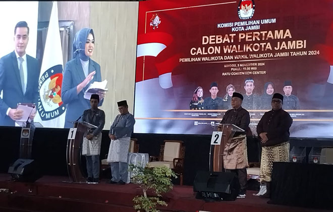 Debat yang diadakan Komisi Pemilihan Umum (KPU) Kota Jambi itu berlangsung di Ratu Convention Centre (RCC), Broni, Jambi (3/10/2024) malam.