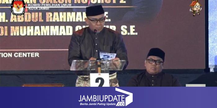 JAMBIUPDATE.CO, JAMBI- Calon walikota Jambi nomor urut 2, H Abdul Rahman (HAR) juga mendapatkan kesempatan menyampaikan visi misi dan program dalam dalam debat publik yang digelar di Ratu Convention Center (RCC) Jambi malam ini, Minggu (3/11/2024).
