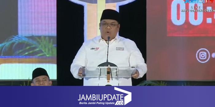 JAMBIUPDATE.CO, JAMBI - Calon Wakil Wali Kota Jambi H Andi Muhammad Guntur menyampaikan visi misi program layanan publik tanpa pungli dalam debat calon wakil Wali KotaJambi di Ratu Convention Centre (RCC) Jumat (8/11/2024) malam.