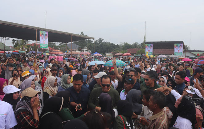 Ribuan masyarakat yang hadir pada kampanye pasangan dengan jargon Berbakti ini merupakan perwakilan warga dari 11 Kecamatan yang berada di Wilayah Kabupaten berjuluk bumi Sailun Salimbai.