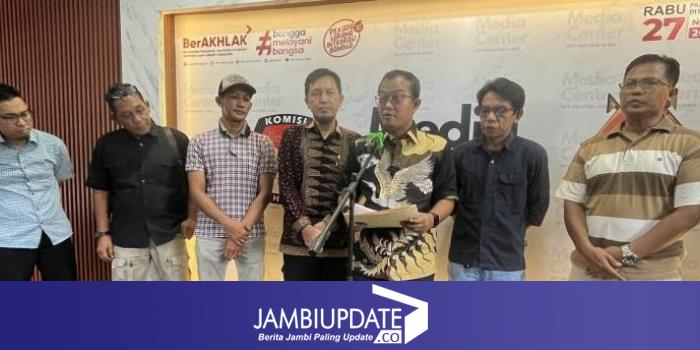 JAMBIUPDATE.CO, JAMBI- Debat terbuka calon Gubernur dan Calon Wakil Gubernur (Cagub-Cawagub) Jambi tahun 2024 putaran ketiga dibatalkan. Hal ini diumumkan secara resmi oleh Komisioner KPU Provinsi Jambi Fahrul Rozi didampingi Bawaslu dan liaison officer (LO) pasangan Romi Hariyanto-Sudirman dan Al Haris- Abdullah Sani dalam konferensi pers, Sabtu (16/11/2024).