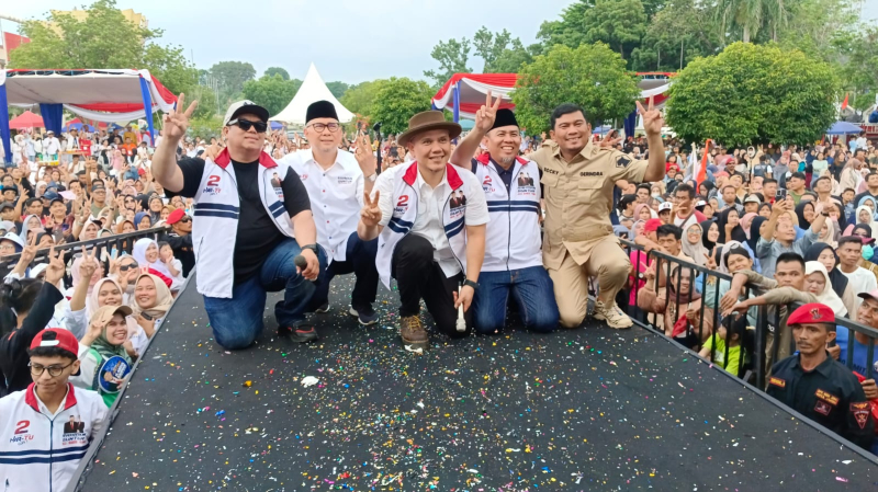 Atmosfer semakin panas ketika vokalis Padi, Fadly, mengajak para pendukung Rahman-Guntur untuk bernyanyi bersama.
