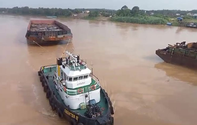Dalam video yang didapat, kapal tongkang itu melaju dari arah Hilir Sungai Batanghari menuju arah Hulu. Tongkang batubara yang menabrak tiang jembatan itu dalam keadaan kosong hendak memuat batubara ke tambang.
