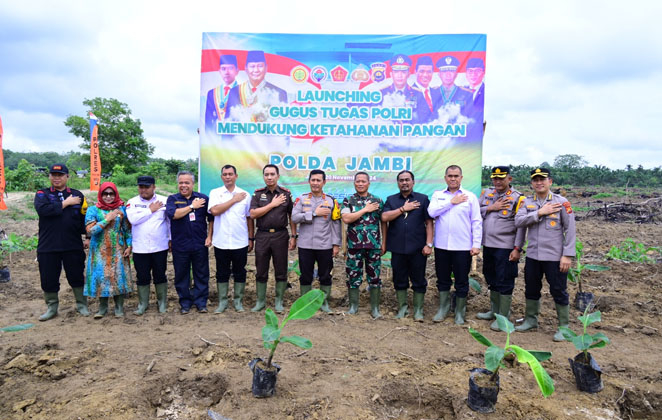 “ Hari ini Polda Jambi telah meluncurkan Gugus Tugas Polri dalam mendukung ketahanan pangan, kegiatan ini juga dilaksnakan secara serentak seluruh Indonesia. Pada kegiatan ini juga turut bekerja sama dengan masyarakat dan kelompok tani,” ucap Kapolda Jambi