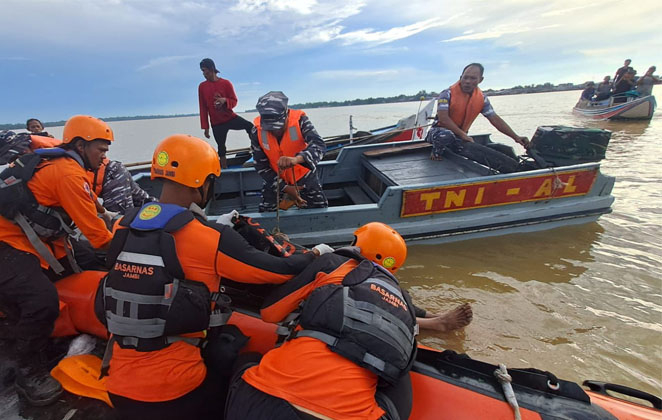 "Korban ditemukan zejauh 2,22 Km ke arah Hilir Sungai dari tempat kejadian. Korban langsung di evakuasi menuju rumah duka dengan menggunakan Rubber Boat milik Basarnas," kata Kepala Basarnas Jambi, Adah Sudarsa. (lan)