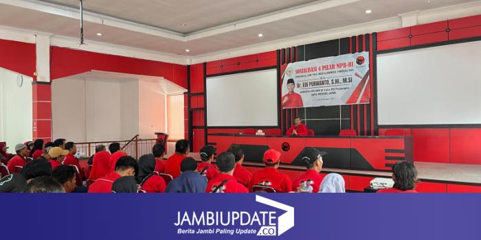 JAMBIUPDATE.CO, JAMBI - Edi Purwanto, Anggota DPR RI Dapil Provinsi Jambi menggelar sosialisasi 4 Pilar Kebangsaan di Kawasan Haji Kamil, Kecamatan Jambi Selatan, Kota Jambi, Kamis (21/11/2024). Acara ini dihadiri oleh tokoh masyarakat dan tokoh pemuda perwakilan seluruh kecamatan yang ada di Kota Jambi.