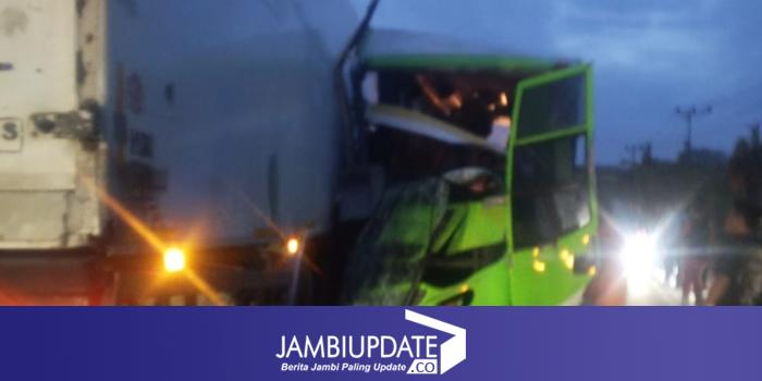 JAMBIUPDATE.CO, MUARO JAMBI- Kecelakaan lalulintas kembali terjadi di wilayah hukum Polres Muaro Jambi. Kali ini, kecelakaan melibatkan antara Mobil Mitsubishi Micro Bus dengan Mobil Box Hino Tronton. Akibatnya Mobil Mus Mengalami Rusak Parah.