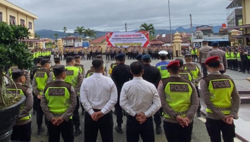 JAMBIUPDATE.CO, Sungai Penuh- Kepolisian Resor (Polres) Kerinci menggelar Apel Pergeseran Pasukan Pengamanan Tahap Pemungutan dan Penghitungan Suara Pemilihan Kepala Daerah Serentak tahun 2024 di Lapangan Apel Mako Polres Kerinci, Senin (25/11/2024).