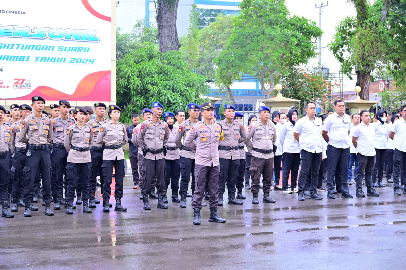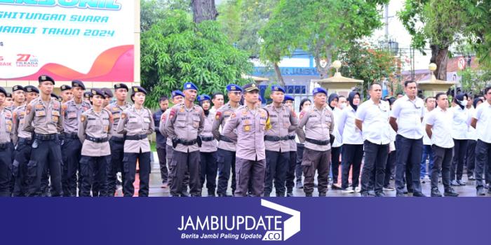 Pada apel tersebut disampaikan amanat oleh Irwasda Polda Jambi untuk bersama-sama memantau situasi Kamtibmas selama masyarakat melakukan pencoblosan dan penghitungan suara.