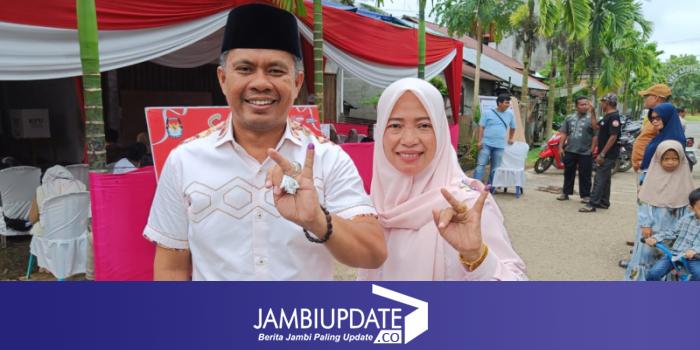 Pantauan dilapangan Pasangan muda Koalisi Tebo Maju ini, hadir di TPS 11 sekira pukul 10.00 WIB dan langsung menggunakan hak pilihnya.
