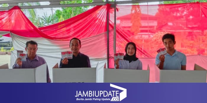 JAMBIUPDATE.CO, MUARA BUNGO - Calon Bupati Bungo nomor urut dua Jumiwan Aguza, S.M., M.M menyalurkan hak pilihnya di TPS 07 Kelurahan Pasir Putih, Kecamatan Rimbo Tengah, Rabu (27/11/2024).