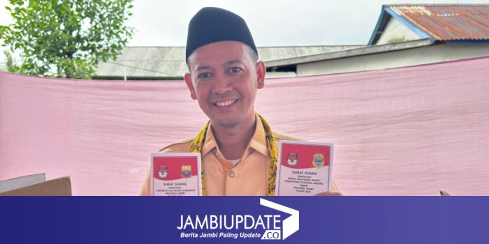 JAMBIUPDATE.CO, MUARASABAK - Calon Wakil Bupati Kabupaten Tanjabtim Nomor Urut 2, Muslimin Tanja bersama istri datang ke TPS dengan menggunakan Sal Batik khas Tanjabtim.