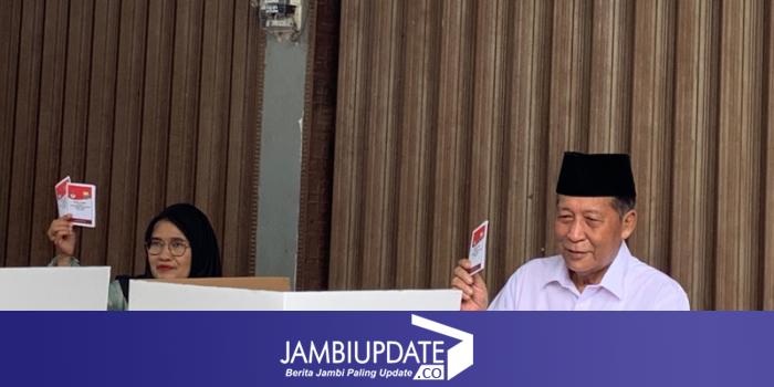 JAMBIUPDATE.CO, JAMBI- Wakil Gubernur Jambi Abdullah Sani menyalurkan hak suaranya di TPS 09 Kelurahan Talang Bakung, Kecamatan Paal Merah, Kota Jambi. Tepatnya ia datang ke TPS pada pukul 10.38 WIB, Rabu (27/11/2024).