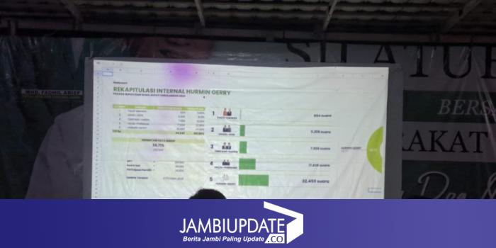 JAMBIUPDATE.CO, SAROLANGUN - Berdasarkan data hasil rekapitulasi internal Hurmin-Gerry, yang bersumber dari C1 dari semua TPS yang ada di 11 Kecamatan di Kabupaten Sarolangun, pasangan Hurmin-Gerry unggul jauh meninggalkan paslon lainnya.