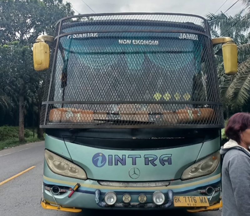 JAMBIUPDATE.CO, JAMBI- Insiden menghebohkan terjadi pada bus Intra dengan rute Jambi-Pematang Siantar, Sumatera Utara, yang mengalami pecah ban pada Selasa (31/12/2024) sekitar pukul 02.00 WIB di wilayah Balam, Kabupaten Rokan Hilir, Provinsi Riau.