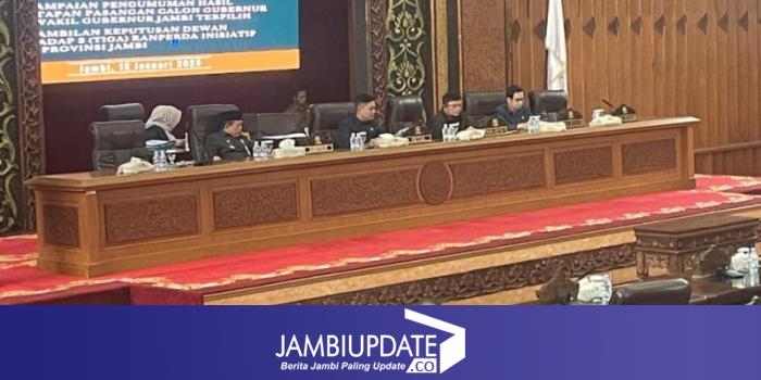 JAMBIUPDATE.CO, JAMBI - Dewan Perwakilan Rakyat Daerah (DPRD) Provinsi Jambi mengumumkan Al Haris dan Abdullah Sani (Haris-Sani) sebagai Gubernur dan Wakil Gubernur Jambi terpilih periode 2025-2030.