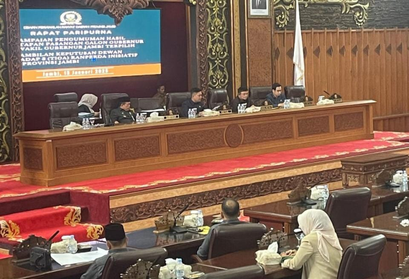 Pengumuman pasangan Al Haris dan Abdullah sebagai Gubernur dan Wakil Gubernur Jambi terpilih berlangsung pada rapat Paripurna DPRD Provinsi Jambi, Senin (13/01/2024).