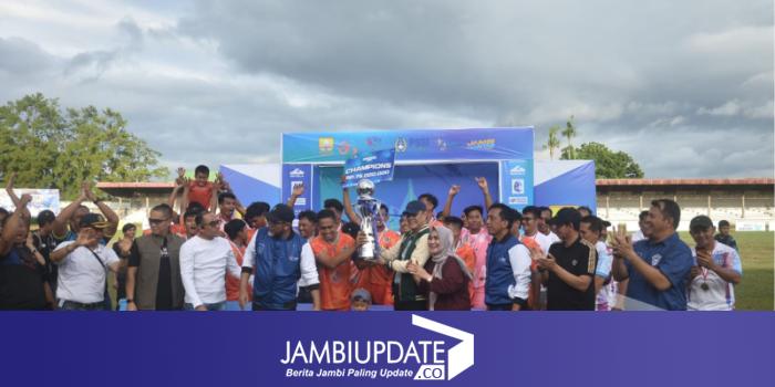 JAMBIUPDATE.CO, JAMBI - Tebo berhasil menjadi juara Gubernur Jambi Cup 2025. Tim dengan kostum kebanggaan berwarna oranye mengalahkan Merangin 3-2 lewat pertarungan sengit, Minggu (19/1/2025).