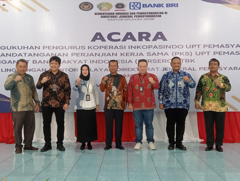 JAMBIUPDATE.CO, JAMBI – Kepala Kantor Wilayah (Kakanwil) Jambi, Hidayat, mengukuhkan pengurus Induk Koperasi Pemasyarakatan Indonesia (INKOPASINDO) sekaligus menyaksikan menandatangani Perjanjian Kerja Sama antara seluruh Unit Pelaksana Teknis (UPT) se-Wilayah Jambi dengan Bank BRI. Acara tersebut berlangsung di Aula Lapas Kelas IIA Jambi pada Jumat (24/1/2025) pagi.