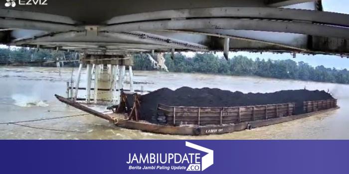 JAMBIUPDATE.CO, JAMBI - Subdit Gakkum Ditpolairud Polda Jambi mengamankan tongkang bermuatan batubara yang menabrak tiang fender Jembatan Panjang di perairan Muara Tembesi, Desa Pelayangan, Kecamatan Muara Tembesi, Kabupaten Batanghari, Jambi.