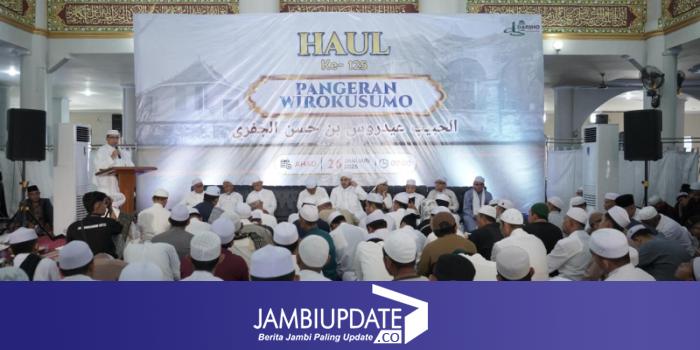 JAMBIUPDATE.CO, JAMBI - Pemerintah Kota (Pemkot) Jambi melalui Dinas Pariwisata dan Kebudayaan bersama masyarakat kembali menggelar Peringatan Haul Al Habib Idrus Bin Hasan Al Jufri bergelar Pangeran Wiro Kusumo dari Kesultanan Jambi yang dipusatkan di Masjid Al-Ihsaniyah, Kelurahan Olak Kemang, Kecamatan Danau Teluk, Jambi Kota Seberang, Minggu (26/01/2025).