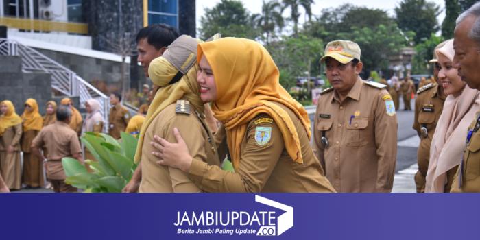 Apel ASN dilapangan utama Balaikota Jambi itu semakin haru saat satu persatu jajaran ASN Pemkot Jambi maju area utama untuk bersalaman dan foto bersama Pj Wali Kota Jambi Sri Purwaningsih. Tampak beberapa diantaranya meneteskan air mata mengenang kebersamaan bersama Pj Wali Kota Jambi itu.