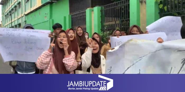 JAMBIUPDATE.CO, JAMBI - Ratusan siswa kelas XII SMKN Kota Jambi menggelar unjuk rasa di sekolah pada Rabu (5/2/2025).