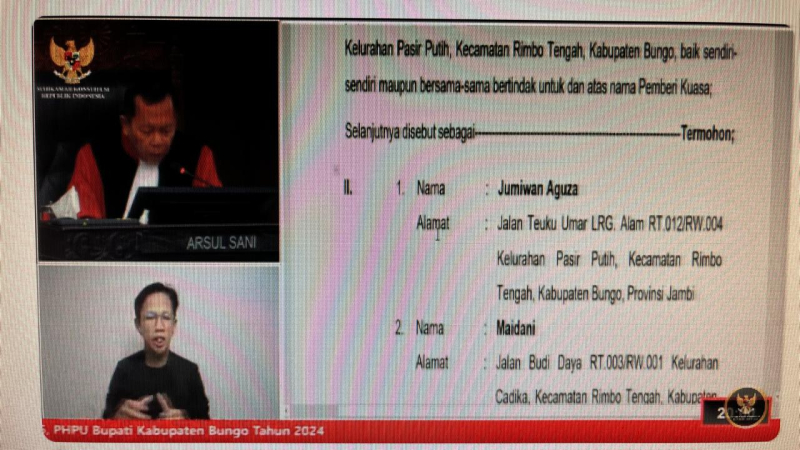 JAMBIUPDATE.CO, JAMBI-Mahkamah Konstitusi (MK) akhirnya menerima gugatan pasangan calon bupati dan wakil bupati Bungo Dedy Putra-Ustad Dayat.