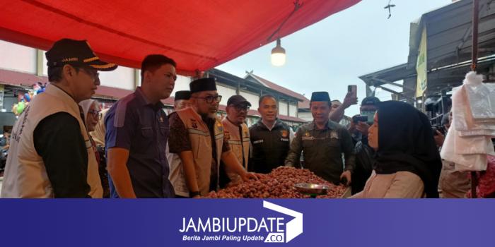 JAMBIUPDATE.CO, JAMBI - Sekretaris Daerah (Sekda) Provinsi Jambi Dr. H. Sudirman, SH, MH bersama Tim Pengendalian Inflasi Daerah (TPID) Provinsi Jambi dan Tim Satgas Pangan Provinsi Jambi melakukan inspeksi mendadak (sidak) ke Pasar Moderen Angso Duo Jambi untuk memantau aktivitas jual-beli dan mengecek harga kebutuhan pokok serta memastikan harga stabil dalam rangka menghadapi bulan suci Ramadhan dan Hari Raya Idul Fitri 1446 H Tahun 2025, Kamis (27/02/2025) pagi.