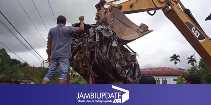 Lantas membuat air Sungai Jernih meluap dan menghanyutkan mobil jazz yang sedang terparkir, kebetulan antara sungai dengan rumah pemilik kendaraan tersebut bersebelahan.