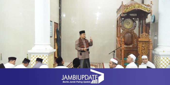 JAMBIUPDATE.CO, JAMBI - Dimalam ke-3 Safari Ramadhan Pemerintah Kota (Pemkot) Jambi, Wali Kota Jambi dokter Maulana dan Wakil Wali Kota Diza Hazra Aljosha sambangi Masjid Al-Fatah Al-Bafadhal di kawasan Kampung Manggis Kelurahan Sungai Asam Kecamatan Pasar Kota Jambi, Senin malam (3/3/2025).