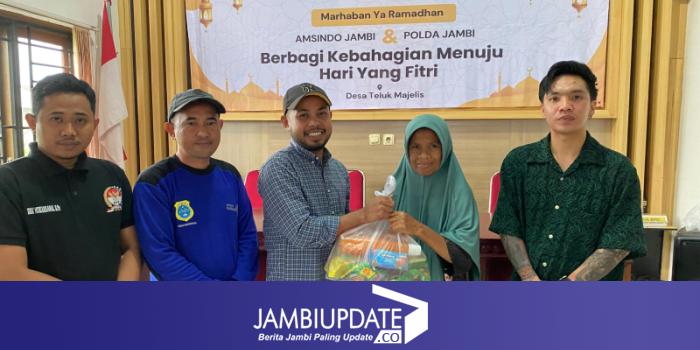 JAMBIUPDATE.CO, JAMBI – Dalam rangka menyambut Hari Raya Idulfitri, Asosiasi Media Sosial dan Siber Indonesia (AMSINDO) Jambi yang Di Support Kepolisian Daerah (Polda) Jambi menggelar kegiatan bakti sosial di Desa Teluk Majelis, Jumat (21/3). Kegiatan ini mengusung tema “Berbagi Kebahagiaan Menuju Hari yang Fitri” dan bertujuan untuk membantu masyarakat yang membutuhkan.