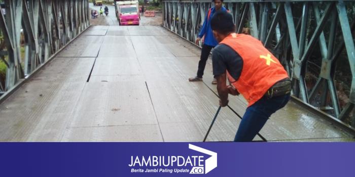 JAMBIUPDATE.CO, JAMBI - Setelah berfungsi sejak 10 hari lalu, Jembatan Bailey (rangka baja portabel) di Kecamatan Jujuhan, Bungo terus dimonitor oleh BPJN Jambi. Melalui Satker PJN II terus dilakukan pengecekan melalui cctv maupun maintenence ringan berupa pengencangan baut.
