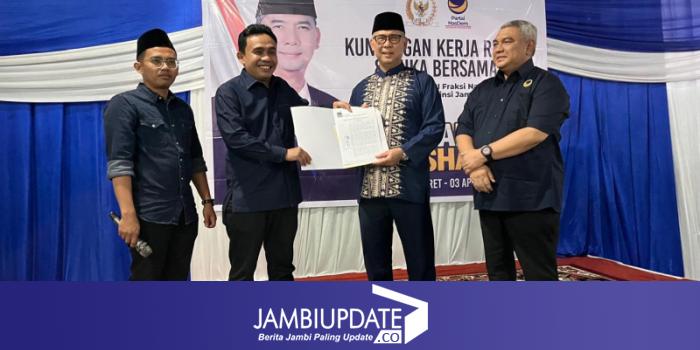 JAMBIUPDATE.CO, JAMBI-Buka puasa bersama yang digelar oleh anggota DPR RI dapil Jambi H Syarif Fasha dengan masyarakat Jambi, pengurus DPW Partai NasDem, anggota DPRD dari NasDem serta pengurus kabupaten/kota Sabtu (22/3/2025) sore, juga dibarengi dengan acara penyerahan Surat Keputusan (SK) Pengurus DPW NasDem Provinsi Jambi periode 2024-2029.