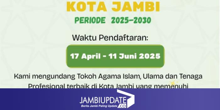 JAMBIUPDATE.CO, JAMBI – Pemerintah Kota Jambi resmi membuka pendaftaran seleksi terbuka calon pimpinan Badan Amil Zakat Nasional (BAZNAS) Kota Jambi periode 2025–2030. Pendaftaran dibuka mulai tanggal 17 April hingga 11 Juni 2025. Proses seleksi ini menyasar tokoh agama Islam, ulama, dan tenaga profesional terbaik di Kota Jambi yang memiliki kapasitas dan integritas untuk mengelola zakat secara amanah dan profesional.