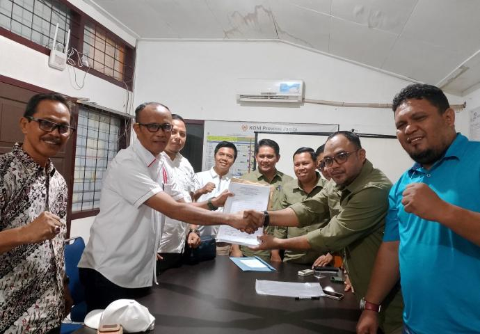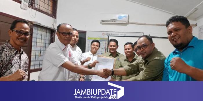 JAMBIUPDATE.CO, JAMBI- Bakal calon Ketua KONI Provinsi Jambi, Mat Sanusi telah mengantongi hasil verifikasi dan validasi dukungan Tim Penjaringan dan Penyaringan (TPP). Hasil verifikasi itu diserahkan oleh Ketua TPP calon Ketua KONI Provinsi Jambi Aswan Hidayat bersama tiga orang anggota Aspihani, Jawir dan Wildan Murtado.