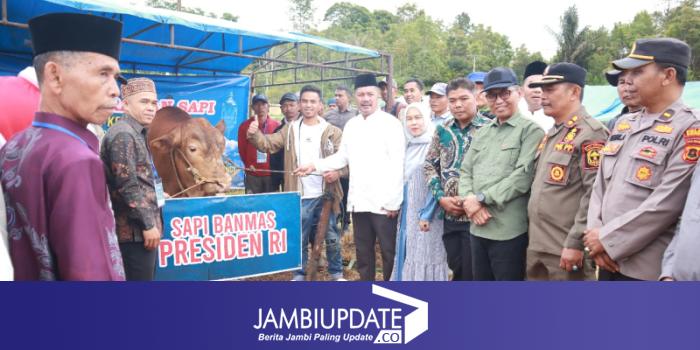 JAMBIUPDATE.CO, KERINCI – Bupati Kerinci, Monadi, S.Sos., M.Si., menyerahkan secara simbolis Bantuan Kemasyarakatan dari Presiden Republik Indonesia, Prabowo Subianto, berupa satu ekor sapi kurban seberat 926 kilogram. Penyerahan dilakukan dalam rangka menyambut Hari Raya Idul Adha 1446 Hijriah, bertempat di Desa Sungai Gelampeh, Kecamatan Gunung Kerinci, pada Sabtu, 7 Juni 2025.