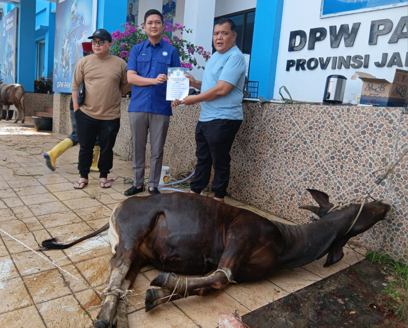 JAMBIUPDATE.CO, JAMBI- Dewan Pimpinan Wilayah (DPW) Partai Amanat Nasional (PAN) Provinsi Jambi melaksanakan pemotongan hewan kurban, Minggu (8/6/2025). Total ada 6 hewan qurban yang di sembelih dalam rangka ibadah Idul Adha 1446 H di halaman Rumah PAN Jambi, kawasan Jalan Kapten Pattimura, Kota Jambi, tersebut.
