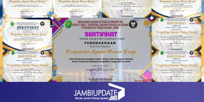 JAMBIUPDATE.CO, JAMBI - Pengadilan Agama Muara Bungo kembali mengokohkan posisinya sebagai Pengadilan Agama paling berprestasi di wilayah PTA Jambi.