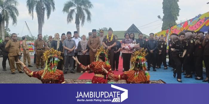 JAMBIUPDATE.CO, SAROLANGUN – Bupati Sarolangun H. Hurmin beserta Forkompinda menyambut kedatangan Kepala Kejaksaan Negeri Sarolangun (Kajari) yang baru, Rolly Manampiring, SH, MH