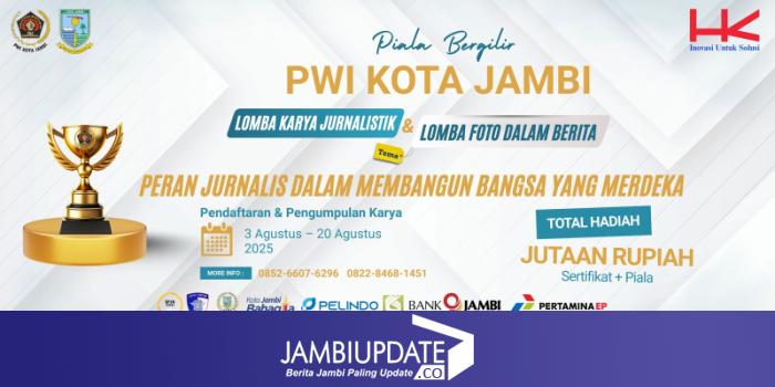 JAMBIUPDATE.CO, JAMBI –Dalam rangka memperingati Hari Kemerdekaan RI ke-80 tahun 2025, Persatuan Wartawan Indonesia (PWI) Kota Jambi menggelar Lomba Karya Jurnalistik dan Lomba Foto dalam Berita yang terbuka untuk seluruh jurnalis se-Provinsi Jambi!