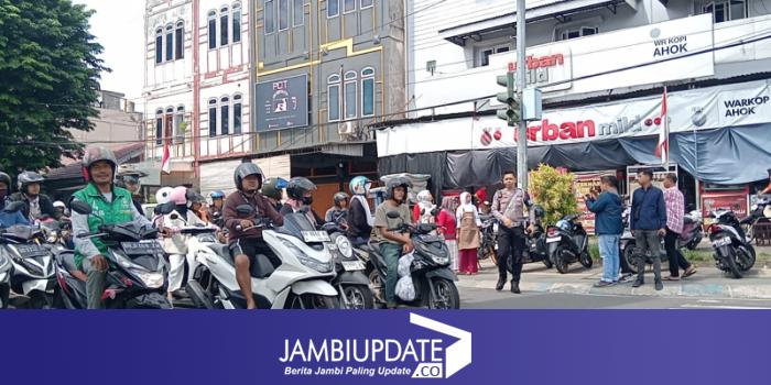 Pantauan dilapangan, terlihat sejumlah petugas dari Satlantas Polresta Jambi menghentikan seluruh pengendara saat mendengar detik-detik proklamasi kemerdekaan Republik Indonesia.