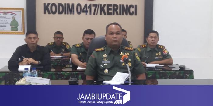 JAMBIUPDATE.CO, JAMBI - Komandan Kodim 0417/Kerinci Letkol Inf Eko Budiarto, S.I.P., M.I.P. menghadiri kegiatan Video Conference (Vicon) Rapat Penyiapan Alih Komando dan Kendali (Alih Kodal) Kodam XX/TIB yang digelar secara terpusat.