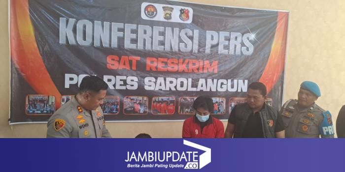 Saat Konferensi Pers, Kapolres Sarolangun, AKBP Wendi Oktariansyah, SH, MH, didampingi Kasat Reskrim Polres Sarolangun, AKP Josua Adrian, menyampaikan, penangkapan pelaku berdasarkan Laporan Polisi Nomor: LP/B-42/V/2025/SPKT/Res Sarolangun tanggal 23 Mei 2025 lalu.