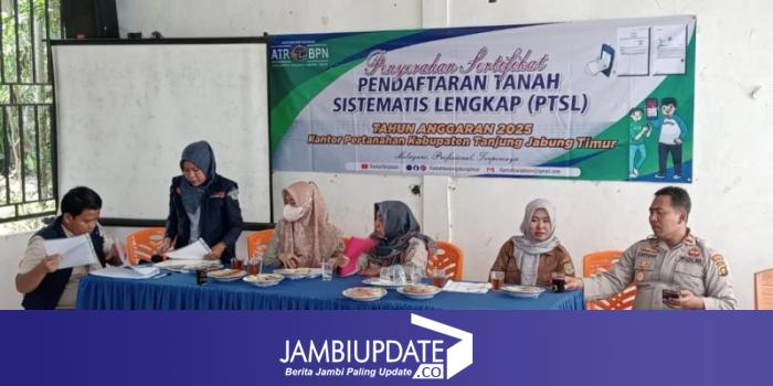 JAMBIUPDATE.CO, MUARASABAK – Badan Pertanahan Nasional (BPN) Kabupaten Tanjabtim menyerahkan sebanyak 179 sertifikat tanah kepada warga Desa Pandan Lagan, Kecamatan Geragai, melalui program Pendaftaran Tanah Sistematis Lengkap (PTSL).
