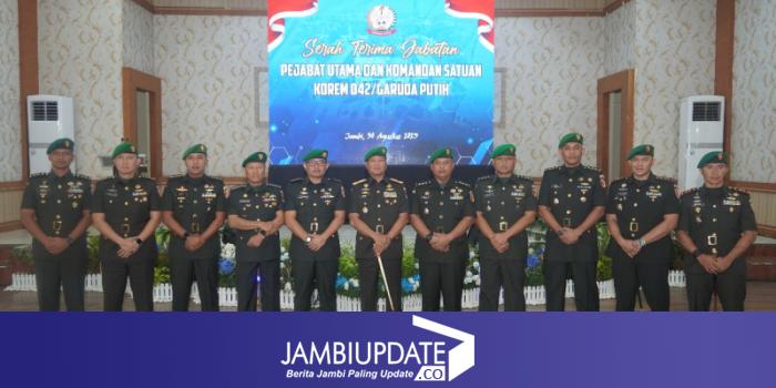 JAMBIUPDATE.CO, JAMBI – Korem 042/Gapu menggelar acara Serah Terima Jabatan (Sertijab) Pejabat Utama dan Komandan Satuan di lingkungan Korem 042/Gapu, berlangsung khidmat dengan penuh suasana kebersamaan dan semangat pengabdian, Sabtu (30/8/2025).